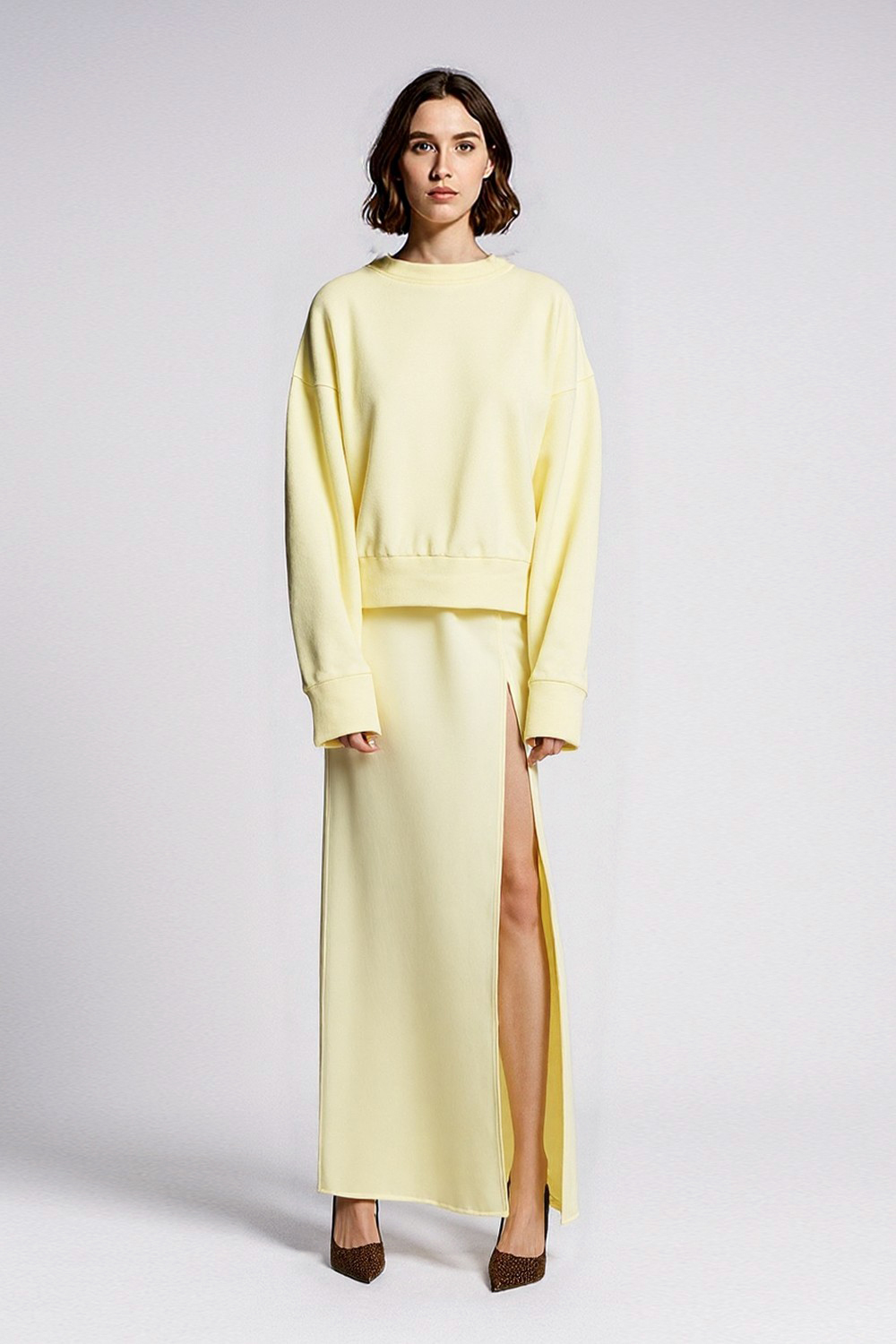 Nie każda bluza musi być sportowa. Nasza żółta bluza z miękkiej, przyjemnej w dotyku bawełny udowadnia, że codzienny komfort może iść w parze z kobiecym charakterem.